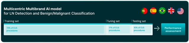 本研究纳入了来自西班牙、葡萄牙、巴西、英国及美国多个中心的跨大西洋多样化数据集。该数据集在成像技术、设备及患者群体方面存在广泛差异,从而有效提升了模型的稳健性与泛化能力,进而用于评估卷积神经网络基于EUS图像对淋巴结恶性病变的检测与分类功能。