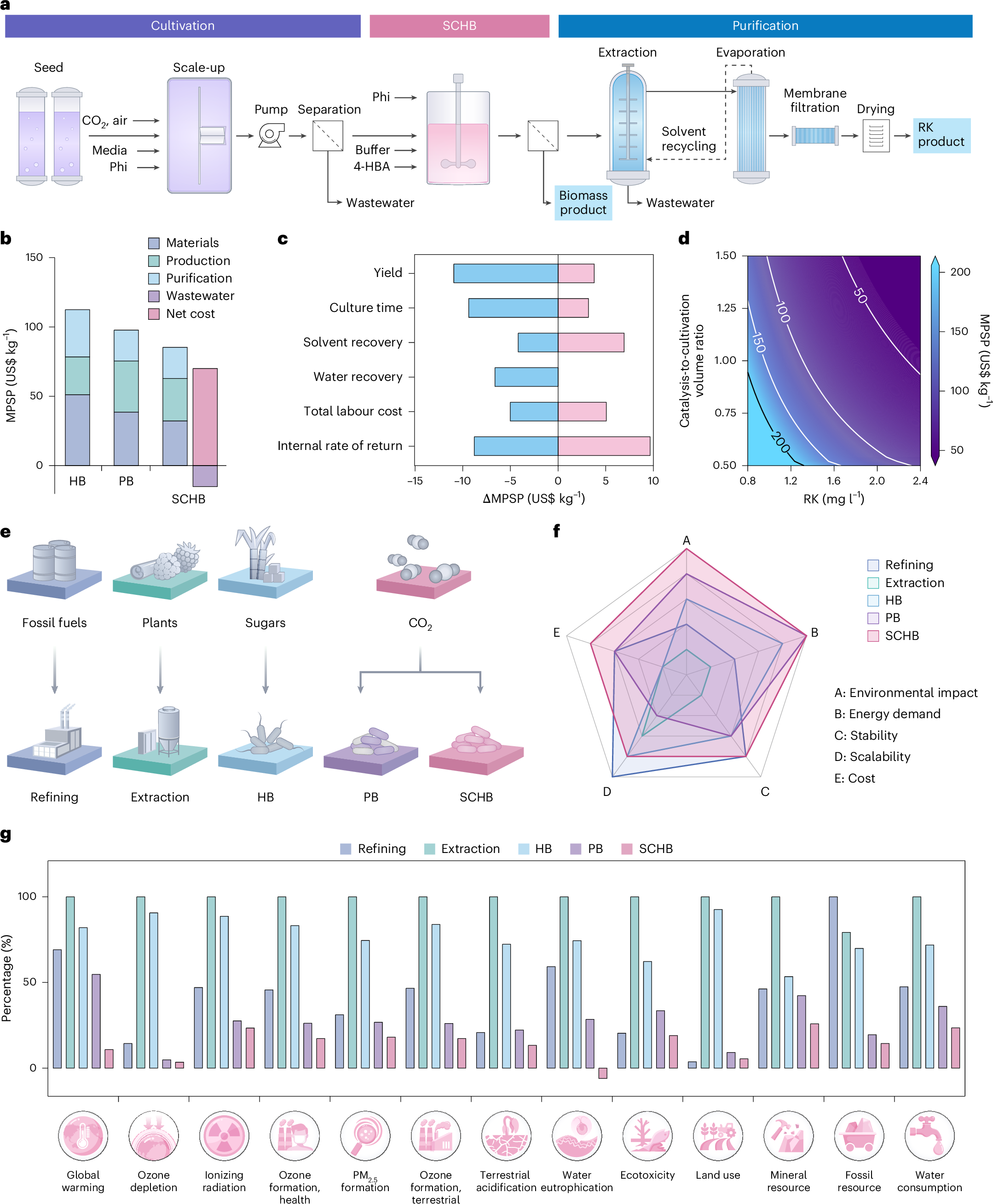 图4:SCHB生产覆盆子酮产品的技术经济分析和生命周期评估。
