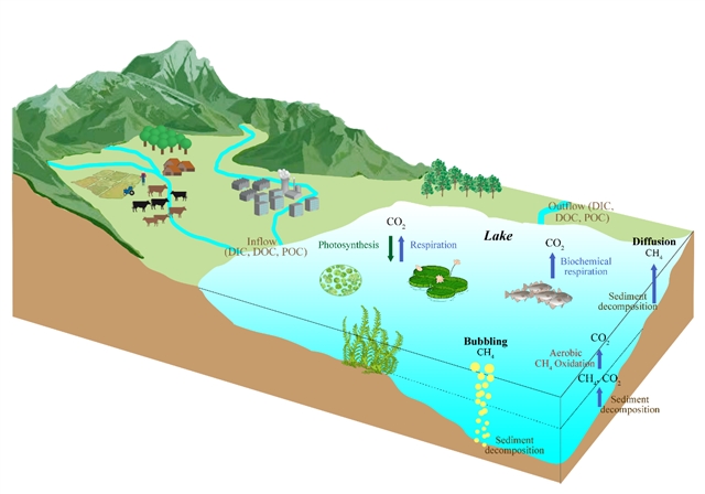 湖泊在全球碳循环中扮演着重要角色,尽管占陆地表面积的比例不足3%,但其每年向大气排放的二氧化碳(CO2)可达 0.3 – 0.6 Pg C,相当于全球陆地生态系统碳汇的12% – 23%。当前,湖泊碳通量的估算仍存在较大不确定性,其时空变化特征及驱动机制亟待更深入研究;此外,可定量揭示气候变化和人类活动对湖泊碳通量影响的模型模拟研究相对缺乏,成为精准评估区域乃至全球湖泊碳收支的重要障碍。