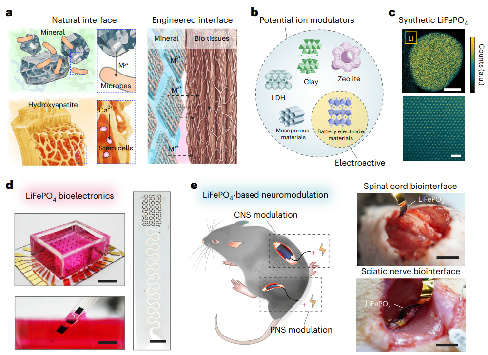 当“锂电池材料”遇上“神经调控”,会发生什么?答案可能比想象中更直接:一种原本用于储能的经典电池材料,如今被重新赋予了生物调控功能。近日,美国芝加哥大学田博之教授与刘翀教授团队合作提出了一种基于锂电池材料的生物电子调控策略,直接利用锂离子电池正极材料磷酸铁锂(LiFePO4)作为生物电子界面,在生理环境中按需释放锂离子,从而实现对神经活动的局部抑制。2026年3月27日,相关成果以“MOBILE”平台为核心,以“Mineral-originated bioelectronics for inhibition via lithium electrochemistry”为题,在线发表于Nature Materials期刊。博士生成哲为论文第一作者及共同通讯作者。