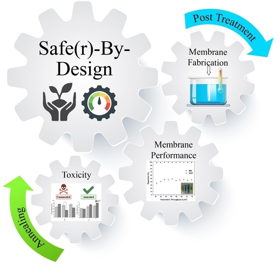 利用膜技术从水溶液中去除小分子量带电化合物仍然是一项挑战。本研究采用非溶剂诱导相分离法(NIPS),以N-甲基-2-吡咯烷酮(NMP)为溶剂,水为非溶剂,制备了聚砜(PSf)和磺化聚醚醚酮(SPEEK)基膜。对膜的结构和形貌进行了表征,并在过滤前后(包括有无退火处理)进行了毒性评估,以考察膜孔中残留溶剂的潜在浸出情况。此外,还使用阳离子和阴离子染料的二元混合物表征了膜的性能。结果表明,该膜具有选择性过滤性能,阳离子染料由于尺寸排阻和静电相互作用而被优先截留。此外,本研究的一个重点是考察溶剂浸出问题,并采用“安全设计”(Safe(r)-by-Design,SbD)方法,旨在提高膜的功能性能,同时最大限度地降低环境毒性。利用模式生物秀丽隐杆线虫(Caenorhabditis elegans)进行的毒性评估表明,退火处理能够减少溶剂渗出,从而降低渗透液毒性,尤其是在中性pH值下,其作用机制是通过促进膜使用前残留溶剂的释放。这些发现揭示了在膜制备过程中采用退火退火工艺的重要性,该工艺能够制备出具有理想性能且毒性最小的膜。