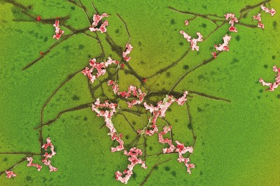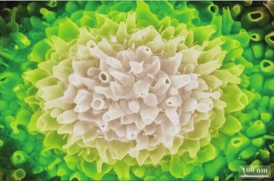 谁能相信,眼前这幅“疏影暗香”怒放的梅花,其实是科学家取直径约100nm的一维纳米棒和200-400nm的纳米颗粒,在放大15000倍率扫描电镜下所呈现出“纷红骇绿”的特殊影像。
