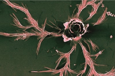 绽放——TiAlN/SiN复合膜层高温氧化后表面生成的花状氧化物,经染色处理后形似绽放的玫瑰。中科院宁波材料所王蕊摄