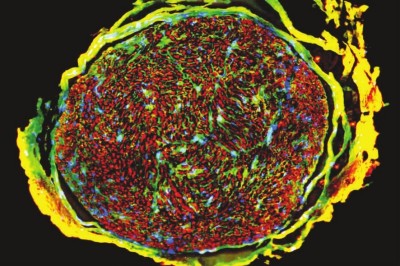 迷幻——人尺神经神经根横切面的三色荧光标记。中科院上海药物所孙鹏摄