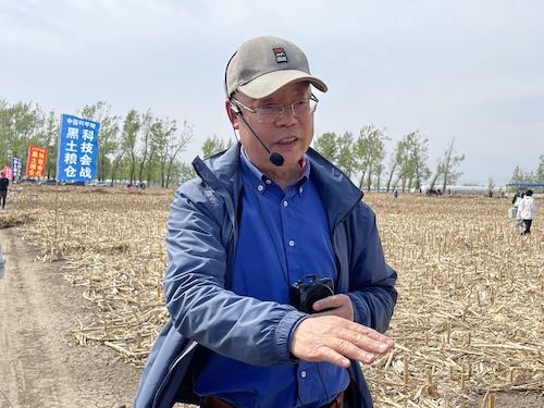 张旭东在梨树试验示范基地讲解保护性耕作技术。 沈春蕾摄