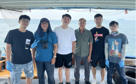 金灵(左三)与李长超(右二)等人在香港海域采集样本时的合照。