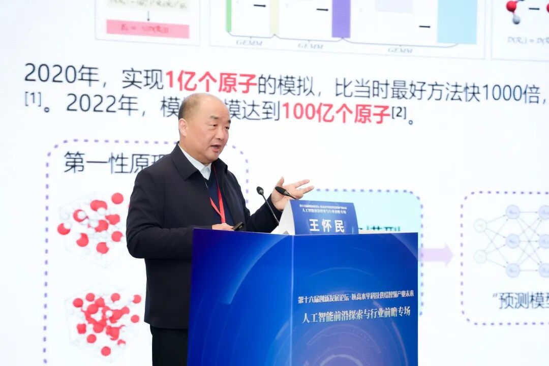 在“人工智能前沿探索与行业前瞻”专场,中国科学院院士、国防科技大学教授王怀民作了主题为《建模方法的革命来自机器学习大模型的启发》的报告,从“确定性的困境:再看二十世纪初雄心”“主观性的回归:再看图灵的思想轨迹”“大模型的革命:再看机器学习的启发”三个方面进行了分享。
