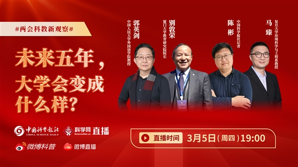 随着人工智能技术在高教领域的深入渗透,以及国家“十五五”规划的正式启动,未来五年国内大学将迎来一场深刻变革。本期直播@中国科学报 特邀厦门大学教育研究院院长别敦荣@0726Harry ;中国人民大学外国语学院教授郭英剑@思想的刻度 和复旦大学环境科学与工程系教授马臻@马臻-复旦大学 ,畅聊未来AI的迅猛发展是否取代大学教师?未来大学的专业设置将如何调整?“优本扩容”后,上好大学是否会变得更容易?尤其当AI已能传授知识,老师们的作用该如何体现?实体校园还有何意义?我们上大学的价值又究竟在哪里?