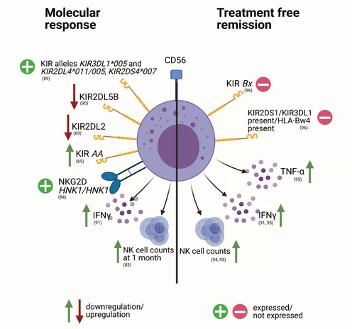 NK细胞相关变化作为慢性粒细胞白血病 (CML) 分子学反应或免治疗缓解的预后因素。