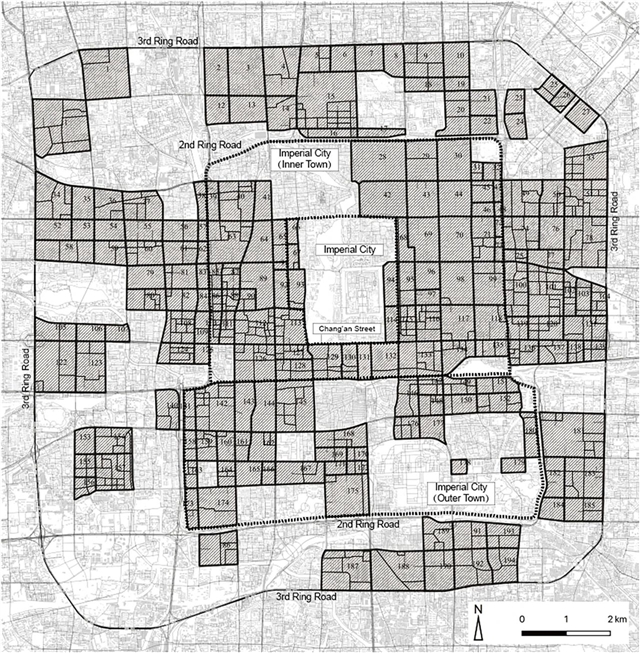 2.1. Urban development stages and constructiontime of grid blocks in Beijing / 北京城市发展阶段与方格状街区建设时间