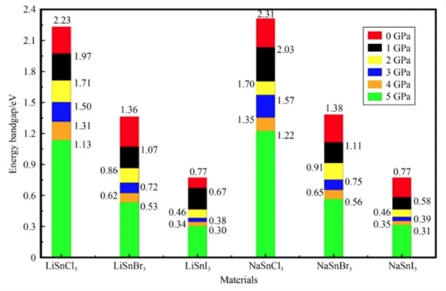 论文标题:Impact of pressure on perovskite MSnX3 (M = Li, Na; X = Cl, Br, I): A density functional theory study