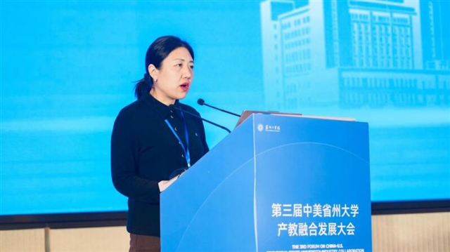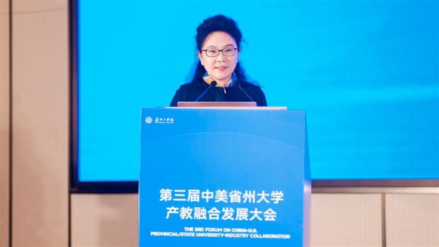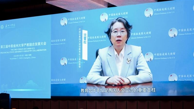 沈雪松在致辞中指出,中美省州大学产教融合发展大会自创办以来,通过深化人才培养和科研创新,充分发挥“地方推动、高校引领,产业参与、青年互学”的独特作用,成为丰富中美教育交流,推动地方合作的新亮点与新通道,生动体现了中美关系互利共赢的本质属性。她强调,未来中美双方应继续秉持开放包容、合作共赢理念,突出产教融合特色,推动人才培养、科学研究和社会服务协同发展,共同为深化中美教育与人文交流,增进两国民间友好作出新的更大贡献,为中美关系稳定健康可持续发展注入源源不断的正能量。