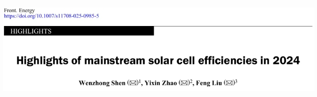 论文标题:Highlights of mainstream solar cell efficiencies in 2024