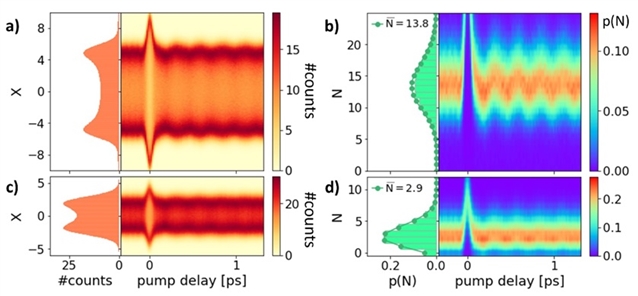 图3. 泵浦-探测调制实验中,相干声子激发引起的光子数分布