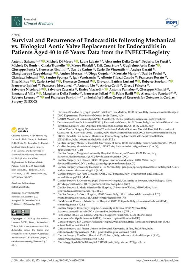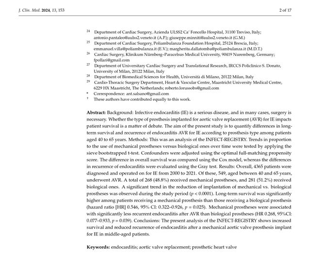 本研究通过对INFECT-Registry数据的分析发现,40至65岁的感染性心内膜炎患者接受机械主动脉瓣置换术后,比接受生物主动脉瓣置换术后具有更高的长期生存率和更低的心内膜炎复发风险。