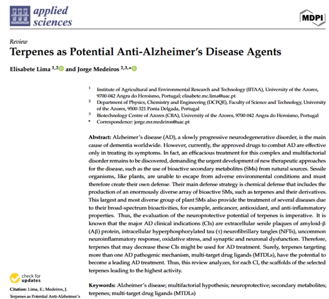 本文综述了萜烯类化合物在阿尔茨海默病防治中的潜在作用机制,涵盖其抗氧化、抗炎、神经保护及抑制β-淀粉样蛋白沉积等多方面效应,并结合体外、动物实验与临床前研究,探讨了萜烯作为候选药物分子的可能价值。