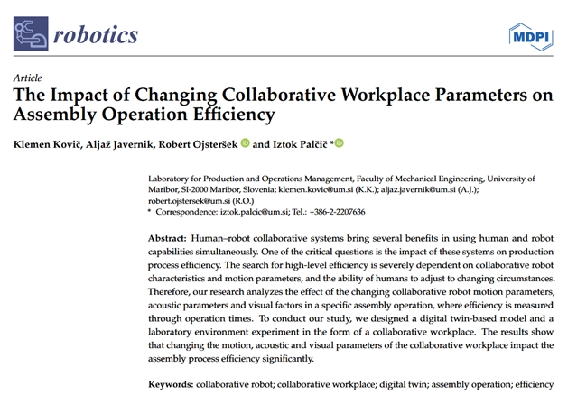 本文研究分析了在特定的装配操作中,协作机器人的运动参数、声学参数和视觉因素的变化所产生的影响,并通过操作时间来衡量装配过程的效率。