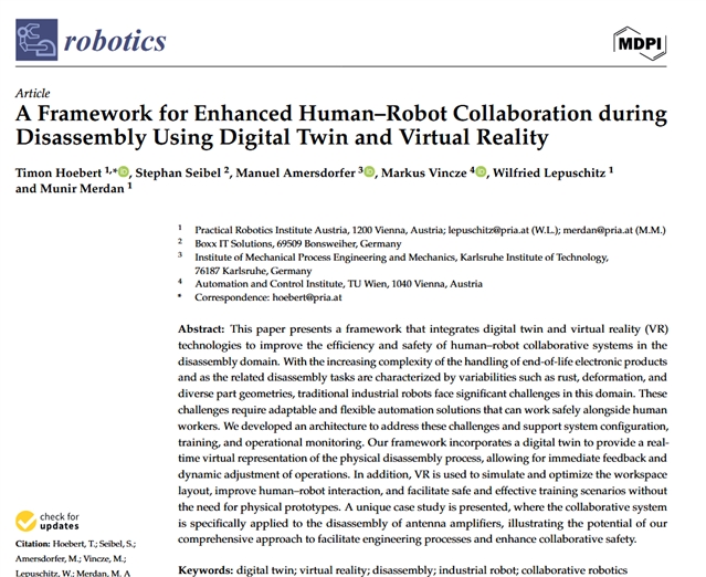 论文选题灵感:“数字孪生与人机协作”研究方向| MDPI Robotics |