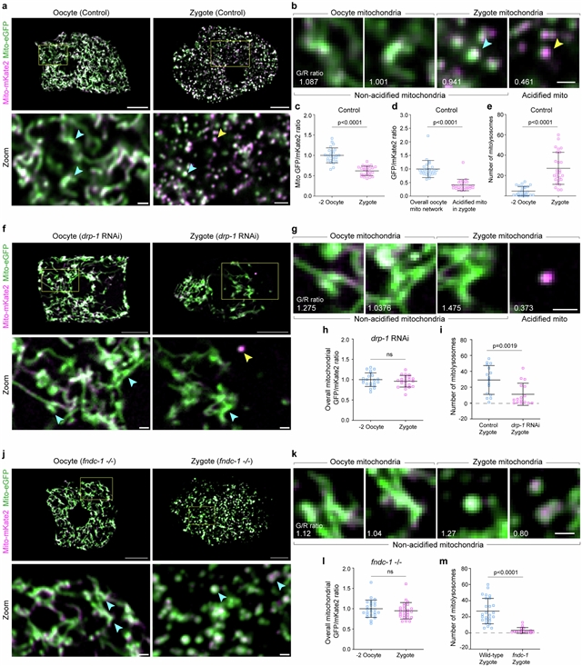 Abstract: The quality of mitochondria inherited from the oocyte determines embryonic viability, lifelong metabolic health of the progeny and lineage endurance. High levels of endogenous reactive oxygen species and exogenous toxicants pose threats to mitochondrial DNA (mtDNA) in fully developed oocytes. Deleterious mtDNA is commonly detected in mature oocytes, but is absent in embryos, suggesting the existence of a cryptic purifying selection mechanism. Here, we discover that in Caenorhabditiselegans, the onset of oocyte-to-zygote transition developmentally triggers a rapid mitophagy event. We show that mitophagy at oocyte-to-zygote transition (MOZT) requires mitochondrial fragmentation, the macroautophagy pathway and the mitophagy receptor FUNDC1, but not the prevalent mitophagy factors PINK1 and BNIP3. MOZT reduces the transmission of deleterious mtDNA and as a result, protects embryonic survival. Impaired MOZT drives the increased accumulation of mtDNA mutations across generations, leading to the extinction of descendant populations. Thus, MOZT represents a strategy that preserves mitochondrial health during the mother-to-offspring transmission and safeguards lineage continuity.