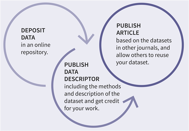 数据描述符:发布对科学和学术数据集的描述(每篇文章描述一个数据集)。所描述的数据集须在发表前公开存储,最好采用开放许可,以便他人可以重复使用该数据集。小型数据集也可以作为数据集论文的补充材料发表在Data期刊上。论文中必须提供数据集公开托管版本的链接。因此,数据描述符能够对科学研究中使用的数据集进行便捷的引用性、可追溯性和可靠性。基于这些数据在其他地方发表的研究文章,可以通过标准参考文献和DOI链接回数据描述符。数据描述符采用CC BY许可协议发布,因此允许在其他研究论文中重复使用这些描述,而不构成版权侵犯。