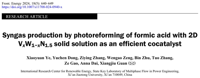 FIE 封面文章 | 二维VxW1-xN1.5固溶体助催化剂实现高效光催化重整甲酸制备合成气 |
