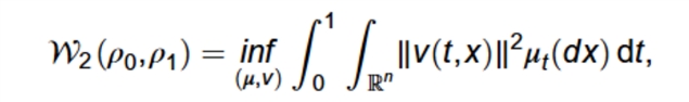 根据 Benamou-Brenier 表示的 Wasserstein 距离作为作用泛函,作者构建了一个核心公式: