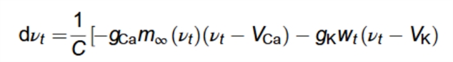 这个公式用来描述神经元膜电位(vt)和钾离子通道状态(ωt)的动态变化,是分析 “静息状态→振荡状态” 转换路径的基础。