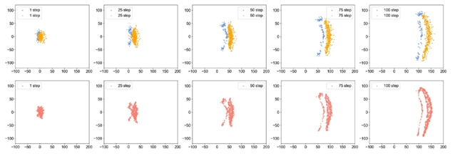 图3:健康→AD 状态演化密度动态图。展示从第 1 步到第 100 步的密度演化过程,第 25 步出现明显几何突变,精准对应健康向 AD 转变的关键节点。