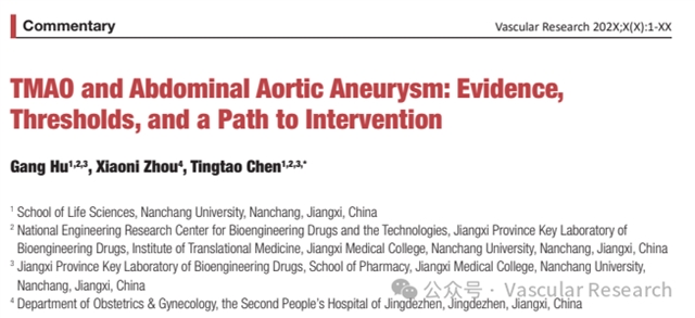 Citation:Gang Hu, Xiaoni Zhou, Tingtao Chen. TMAO and Abdominal Aortic Aneurysm: Evidence, Thresholds, and a Path to Intervention. Vascular Research 1-4 DOI:10.15302/VR.2025.0003