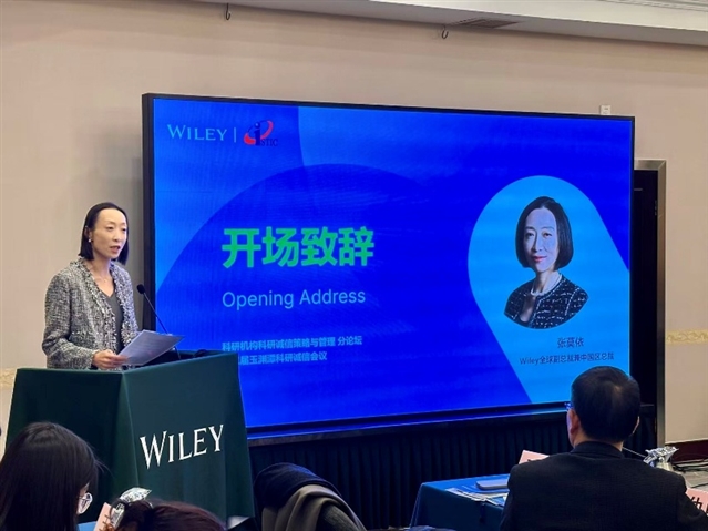 Wiley联合中信所主办的“科研机构科研诚信策略与管理”分会场中,Wiley全球副总裁兼中国区总裁张莫依女士致开场辞。