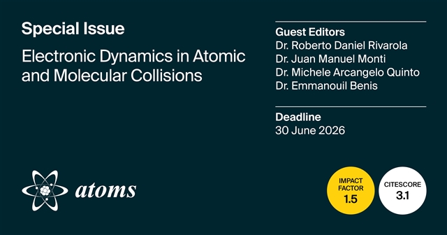 Atoms期刊推出特刊Electronic Dynamics in Atomic and Molecular Collisions(原子与分子碰撞中的电子动力学),诚邀各位学者在这个快速发展的研究领域踊跃投稿,无论是聚焦具体问题的案例研究,还是推动方法创新的系统性进展,只要研究旨在探索基础科学问题或报道创新性发现,均在本特刊的欢迎之列。