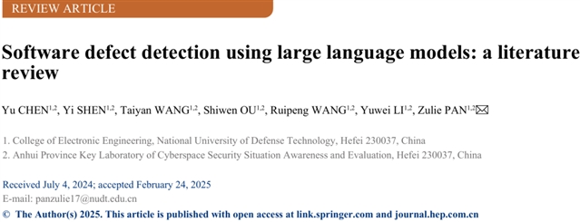Yu CHEN, Yi SHEN, Taiyan WANG, Shiwen OU, Ruipeng WANG, Yuwei LI, Zulie PAN. Software defect detection using large language models: a literature review. Front. Comput. Sci., 2026, 20(6): 2006202