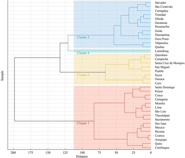 ▲图四:美洲典型殖民遗产聚居类型的聚类树状图。©本文作者