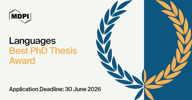 为鼓励即将毕业或即将参加毕业答辩的博士生,Languages期刊特设立2025年最佳博士论文奖(Best PhD Thesis Award)。该奖项将颁发给一位博士生或新晋博士,以表彰其在语言学领域的成就。我们希望这一荣誉能激励获奖者持续深入开展学术研究,发表高质量的研究成果,进一步推动其所在领域的知识进步与学术发展。