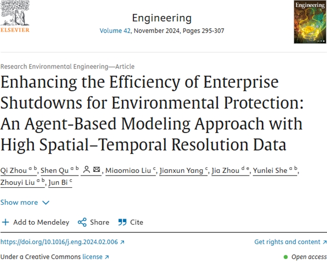 Qi Zhou, Shen Qu, Miaomiao Liu, Jianxun Yang, Jia Zhou, Yunlei She, Zhouyi Liu, Jun Bi. Enhancing the Efficiency of Enterprise Shutdowns for Environmental Protection: An Agent-Based Modeling Approach with High Spatial-Temporal Resolution Data. Engineering, 2024, 42(11): 310-323. DOI: 10.1016/j.eng.2024.02.006