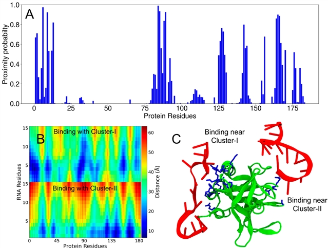 图4. 分子动力学模拟揭示PV-3C蛋白与RNA-1的两个相互作用位点