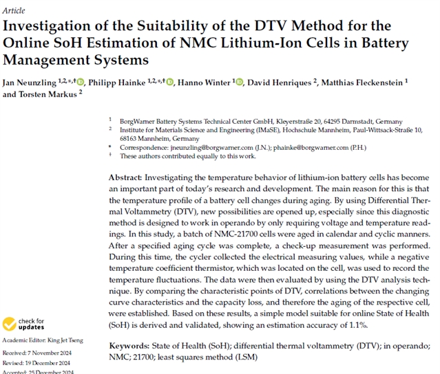 本研究评估了差分热伏安法(DTV)作为一种在线、仅需电压和温度信号即可实现NMC锂离子电池健康状态(SOH)高精度估算的诊断工具的可行性。