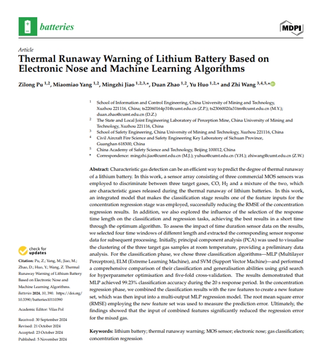 基于电子鼻与机器学习算法的锂电池热失控预警