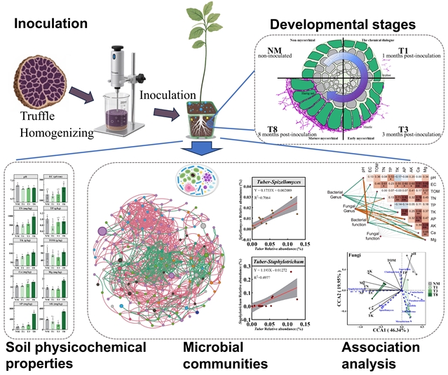 论文标题:Dynamic Shifts in Rhizosphere Microbiome and Soil Nutrients Drive Tuber sinense Mycorrhizal Development in Castanea mollissima Seedlings