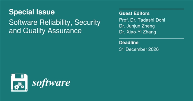 Software 邀请了广岛大学Tadashi Dohi教授,鄭俊俊博士和北京科技大学張逍怡博士,合作创建特刊Software Reliability, Security and Quality Assurance (软件可靠性、安全性和质量保证)。特刊包括但不限于以下主题: