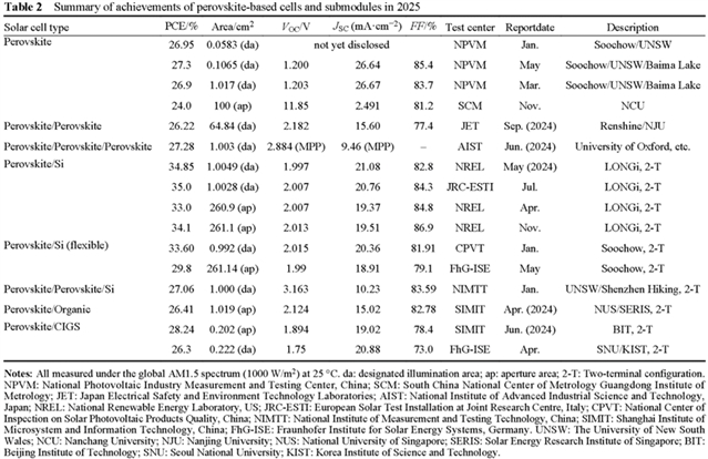 论文标题:Highlights of mainstream solar cell efficiencies in 2025