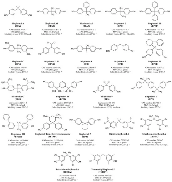 图1. 双酚A及其主要类似物