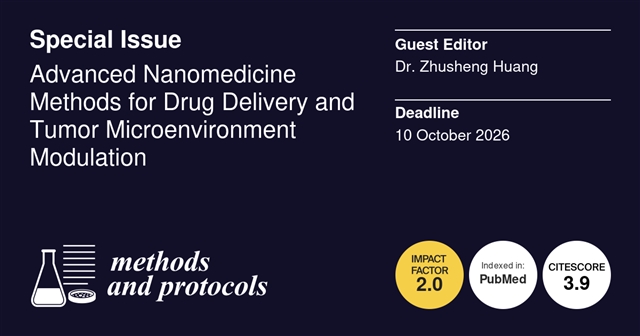基于此,Methods and Protocols特邀南京邮电大学黄竹胜教授创建特刊“Advanced Nanomedicine Methods for Drug Delivery and Tumor Microenvironment Modulation”。本期特刊旨在汇集与纳米药物递送相关的高质量方法学研究、实验方案和技术进展。重点关注利用纳米技术调控肿瘤微环境、增强抗癌免疫以及改善治疗效果的策略。潜在主题包括但不限于: