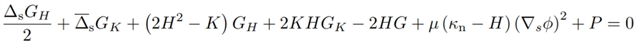 该方程决定了组分在膜表面的平衡分布,其形式类似于Cahn-Hilliard方程,但包含了来自曲率弹性的耦合项。