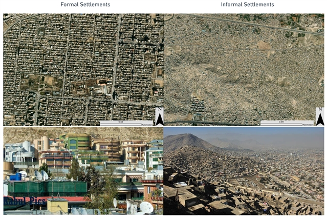 图1: 喀布尔的正规(左)与非正规(右)聚居区,对比其布局与基础设施差异