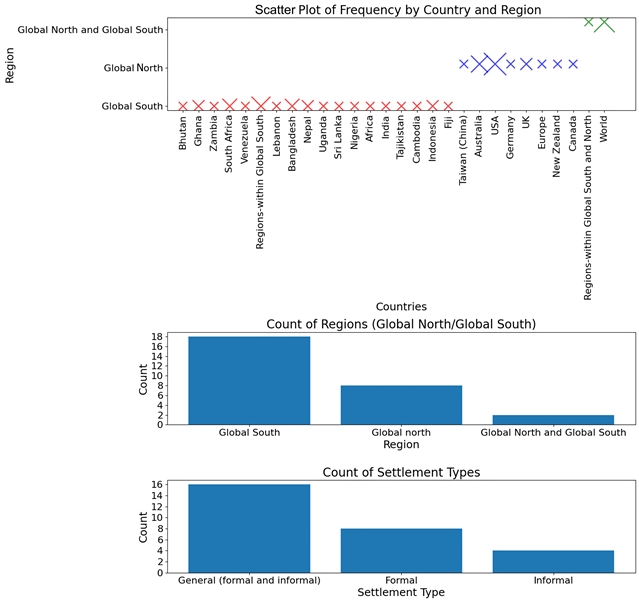 图 4: 按国家、地区和聚居区类型的研究文献描述性分析