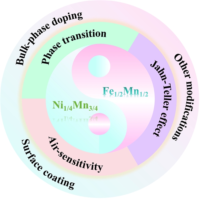 (2) 总结了两大体系面临的关键瓶颈(高压相变、Jahn-Teller效应、空气敏感性),并全面分析了体相掺杂、表面包覆及双相工程等改性策略的作用机制与协同效应。