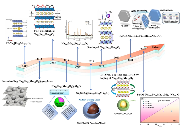 引用信息:Rui Huang, Shaohua Luo, Zhaozhan Shi, Lixiong Qian, Xin Liu, Shengxue Yan. P2-phase Fe1/2Mn1/2 and Ni1/4Mn3/4 manganese-based system materials for advanced sodium-ion batteries: Quo Vadis? Adv. Powder Mater. 5(2026)100386. https://doi.org/10.1016/j.apmate.2025.100386