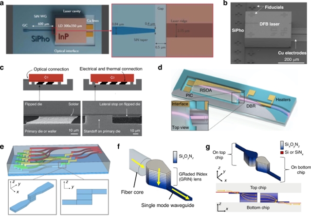 研究人员通过理论分析与实验数据梳理,明确了各类耦合器的技术特性与适用场景:边缘耦合器可实现小于1dB的低插入损耗与宽波长带宽,但需依赖芯片边缘高精度刻蚀;自由形式耦合器借助微镜与微透镜结构,将垂直对准容差扩展至大于35μm,兼容板级互联中较大的芯片间间隙;光学引线键合则凭借灵活性,适配低中批量场景的定制化互联需求。