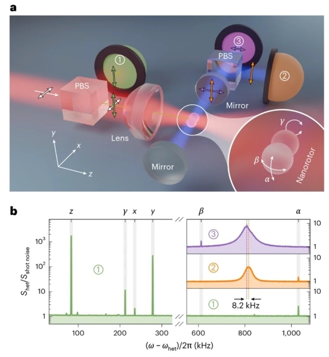 研究组证明,通过向高精细度腔体内进行相干散射,能够实现对光悬浮SiO2纳米粒子的两个正交摆动模式的基态冷却。利用激光诱导解吸装载技术,研究组在短短一天内,成功捕获了数个二氧化硅纳米球二聚体和三聚体,并将其冷却至各自的基态。两个摆动自由度同时冷却,使研究组能够将单个纳米转子的取向相对于空间固定轴进行对准,其角精度优于20微弧度——这已接近量子力学的零点涨落极限。